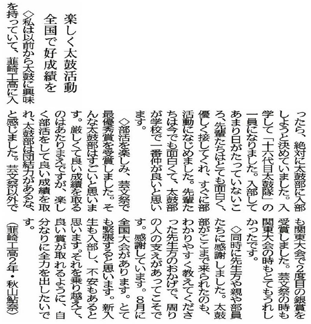 *各報道機関などに掲載された太鼓隊の記事を紹介します2018.9.15©YBSラジオ
